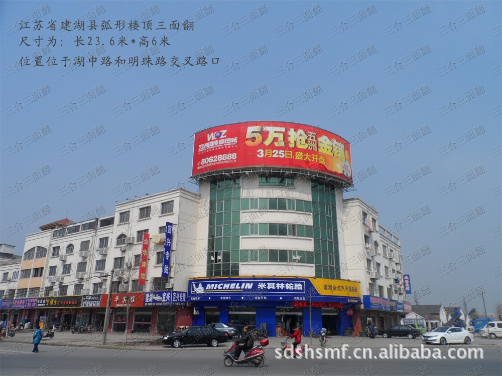枣庄市三合广告机械设备有限公司是一家集研发、生产、销售为一体的三面翻和数字化滚动灯箱(自动换画灯箱)专业制造商,主要从事三面翻和数字化滚动灯箱的制作和销售。“三合”三面翻系列产品包括:133型、126型、100型、70型普通型、内外圆弧型、超高型、过街龙门型等多种样式的三面翻。