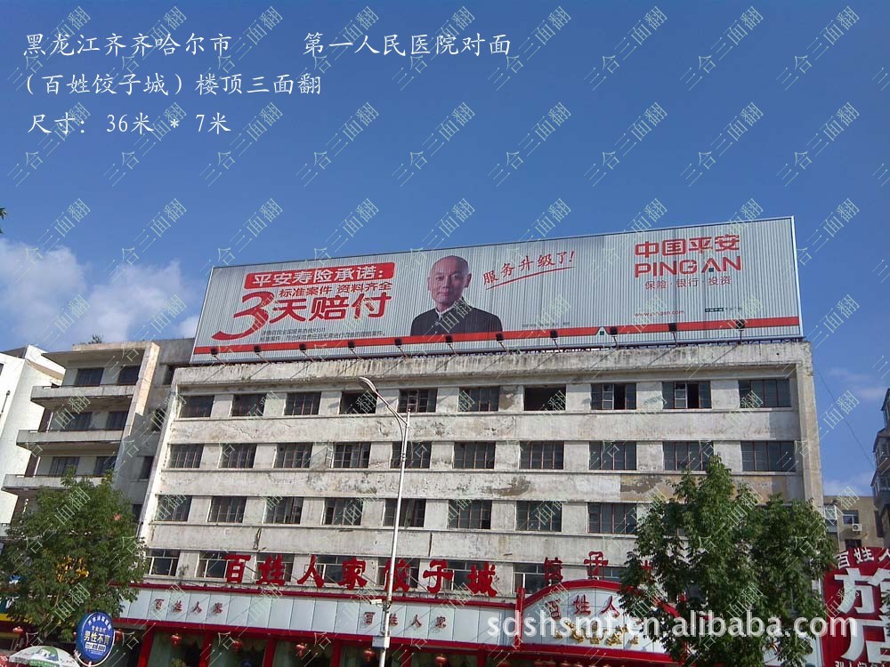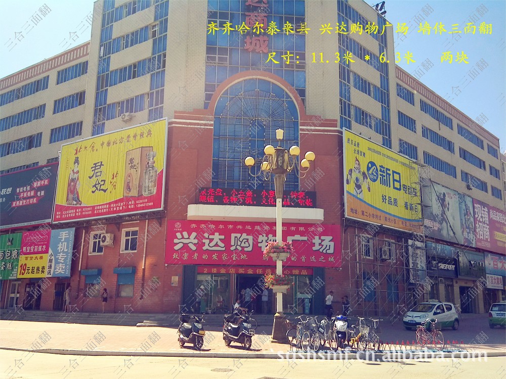 枣庄市三合广告机械设备有限公司生产基地位于山东革命老区---枣庄,公司拥有雄厚的技术实力和强大的生产能力,加上一群锐意进取、不断创新的工程师和团结合作的技术工人,不断推出各种新型耐用的三面翻广告牌。三合三面翻主要部件采用德国先进技术,通过五代技术改良,原材料产地经过精心选择。用“四合格”标准来确保客户产品的安全运行及可靠。即“原料加工合格”、“组装安装合格”、“调试验收合格”、“售后服务合格”,精益求精,不断完善,竭尽全力打造“三合”强势品牌。