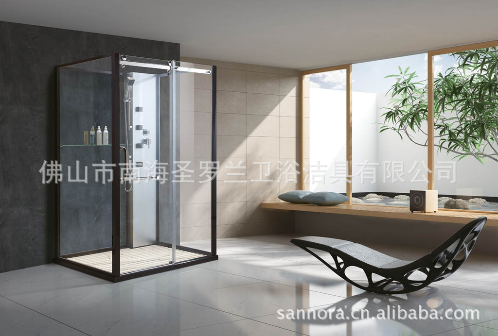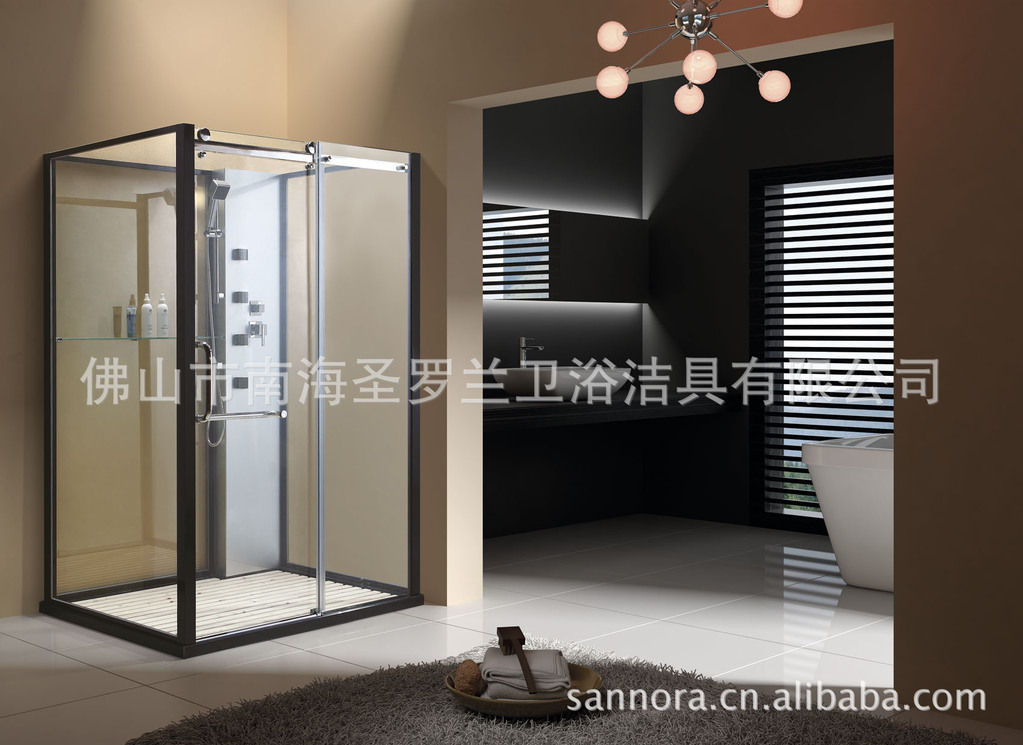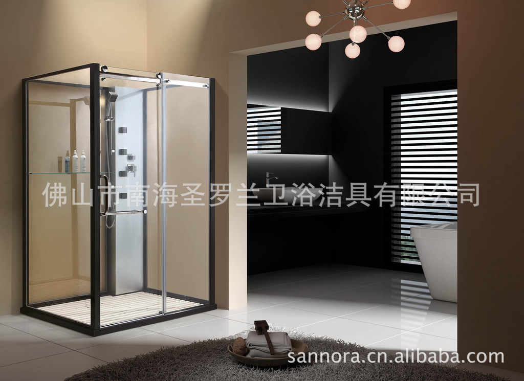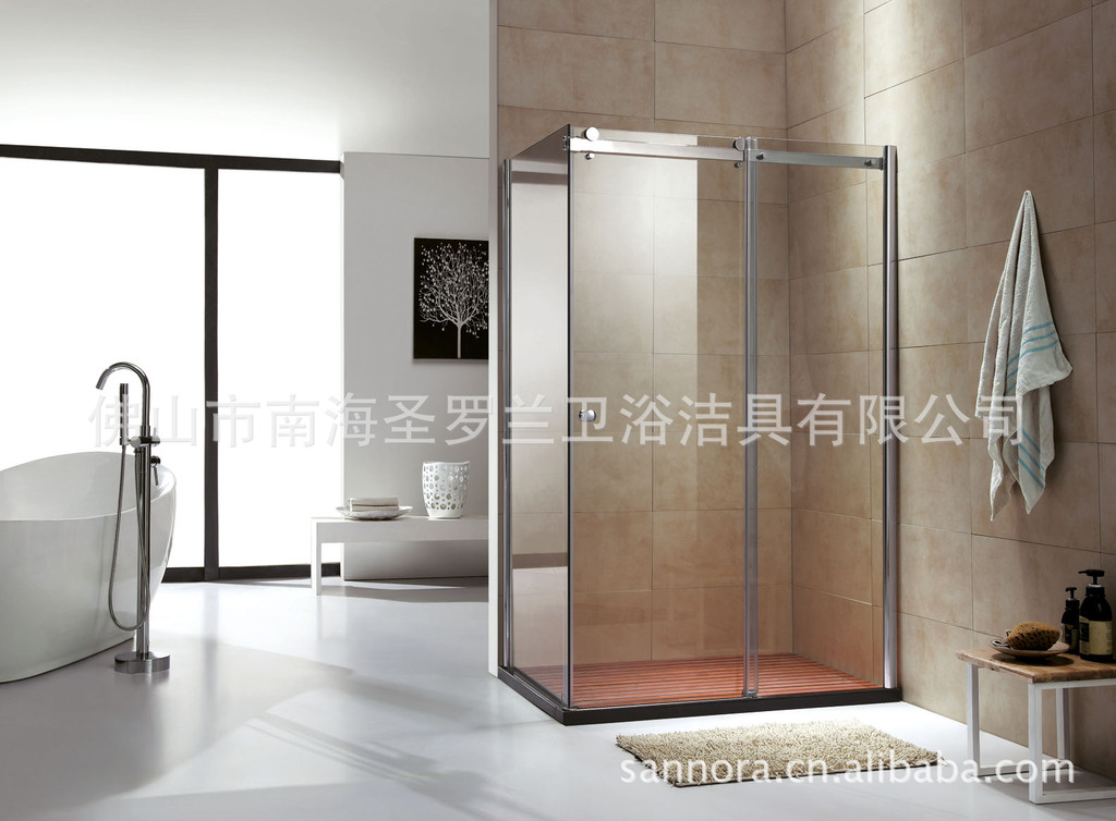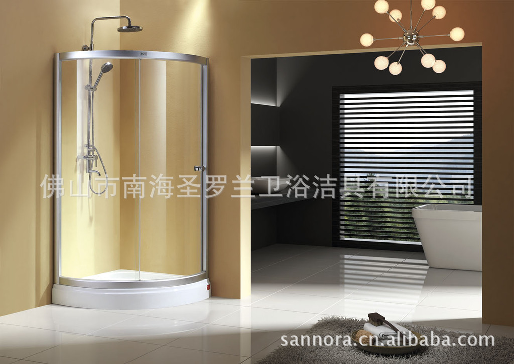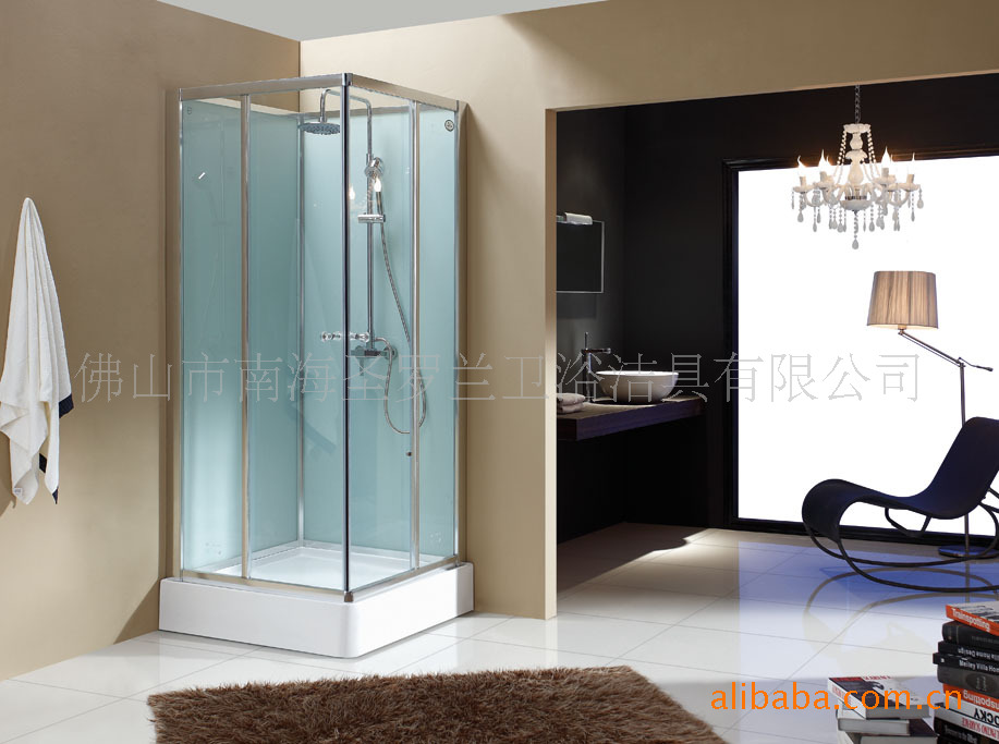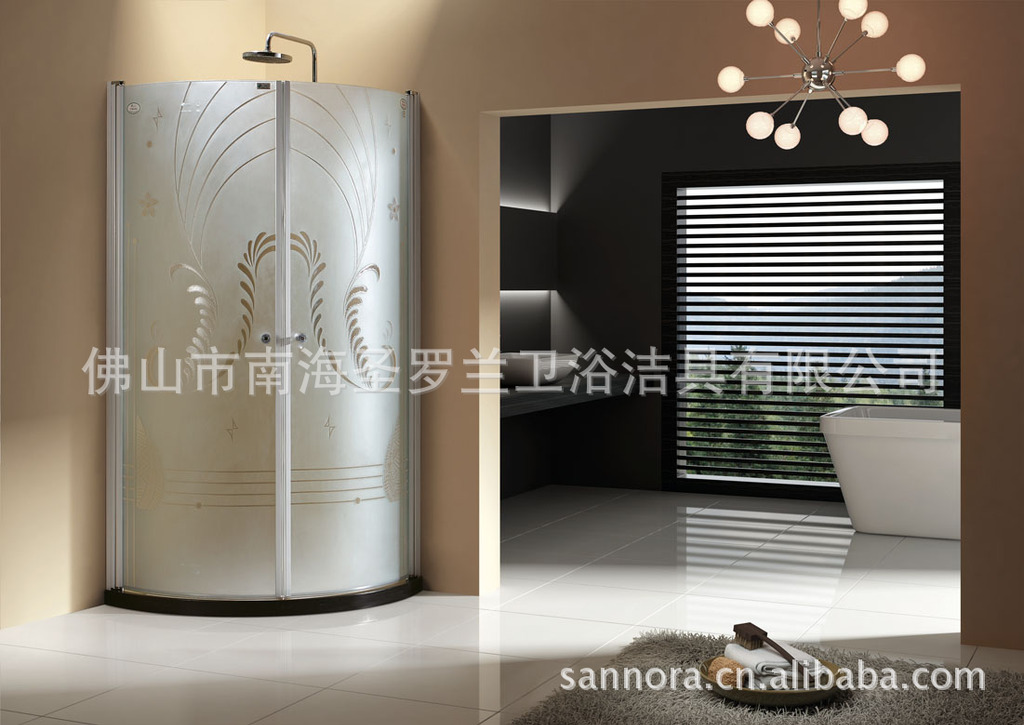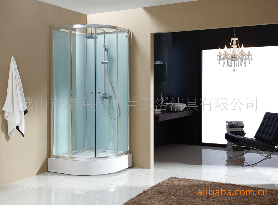 4.带边框淋浴房的铝材等均采用优质铝合金。铝材厚度最低为1.2mm以上,以确保长久使用不变形,氧化光泽度好,无划痕。光银,砂银,哑银,拉丝,白色,象牙色等多种表面处理可供选择。