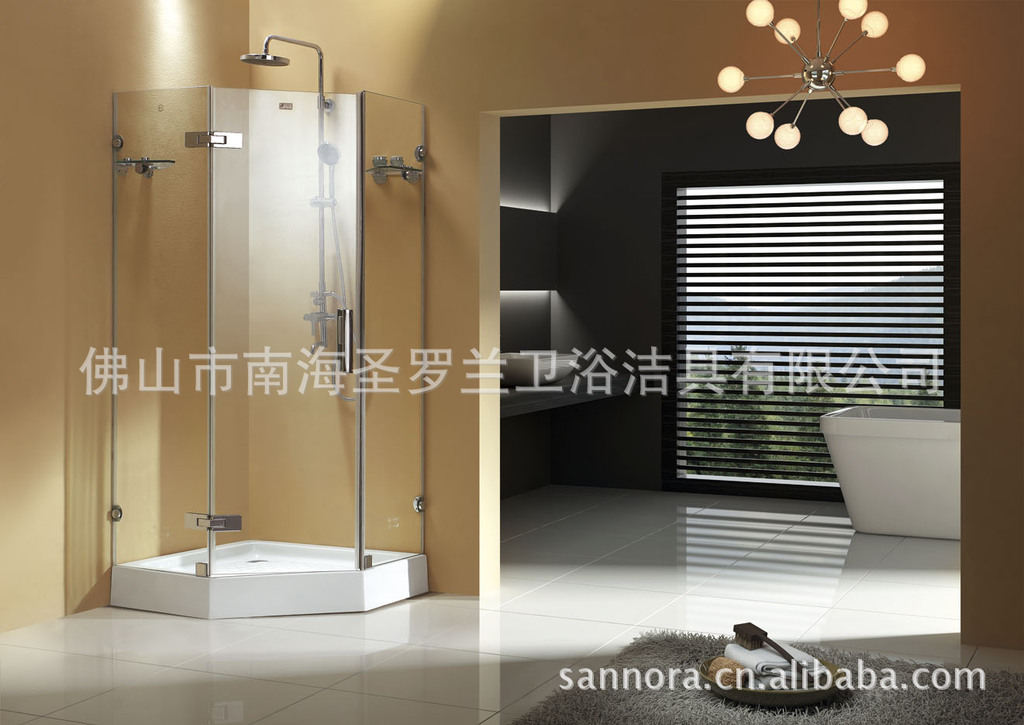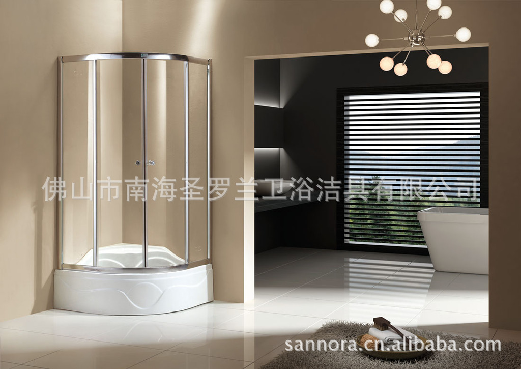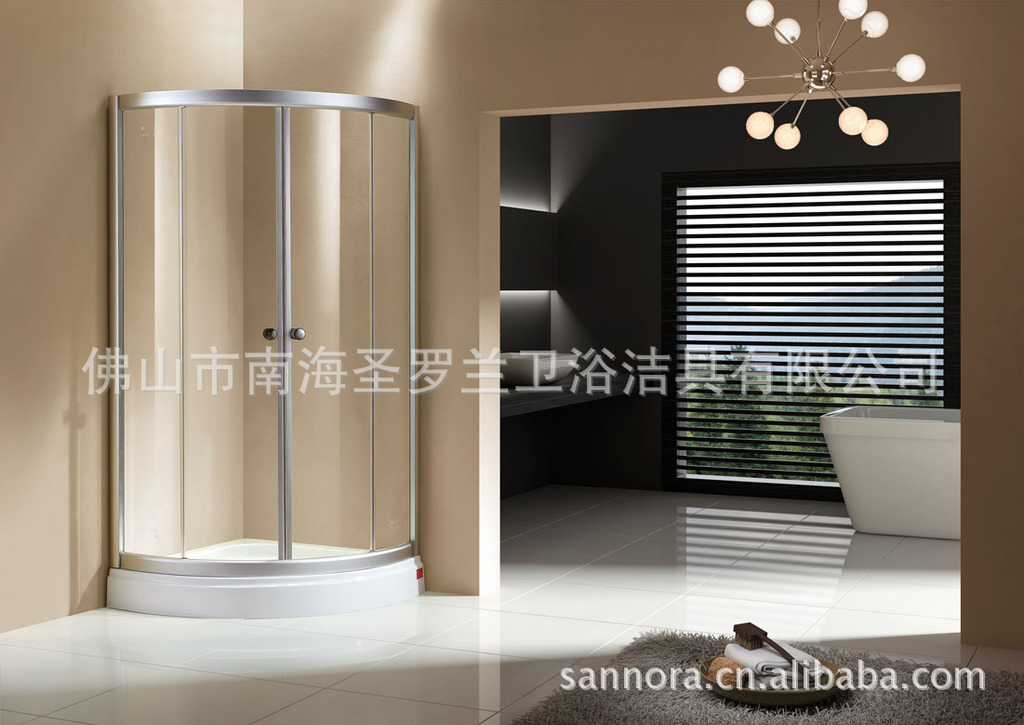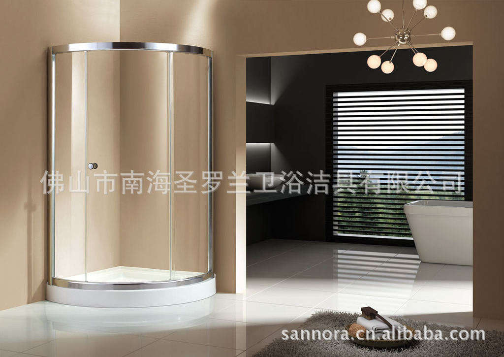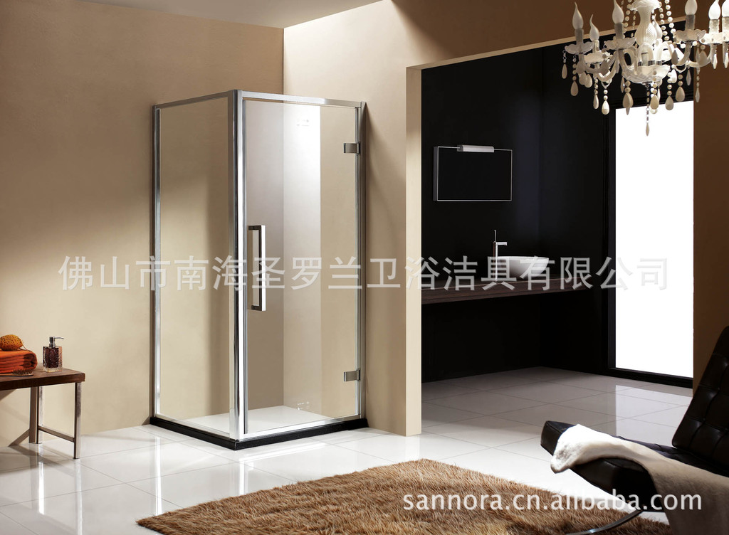 4.带边框淋浴房的铝材等均采用优质铝合金。铝材厚度最低为1.2mm以上,以确保长久使用不变形,氧化光泽度好,无划痕。光银,砂银,哑银,拉丝,白色,象牙色等多种表面处理可供选择。