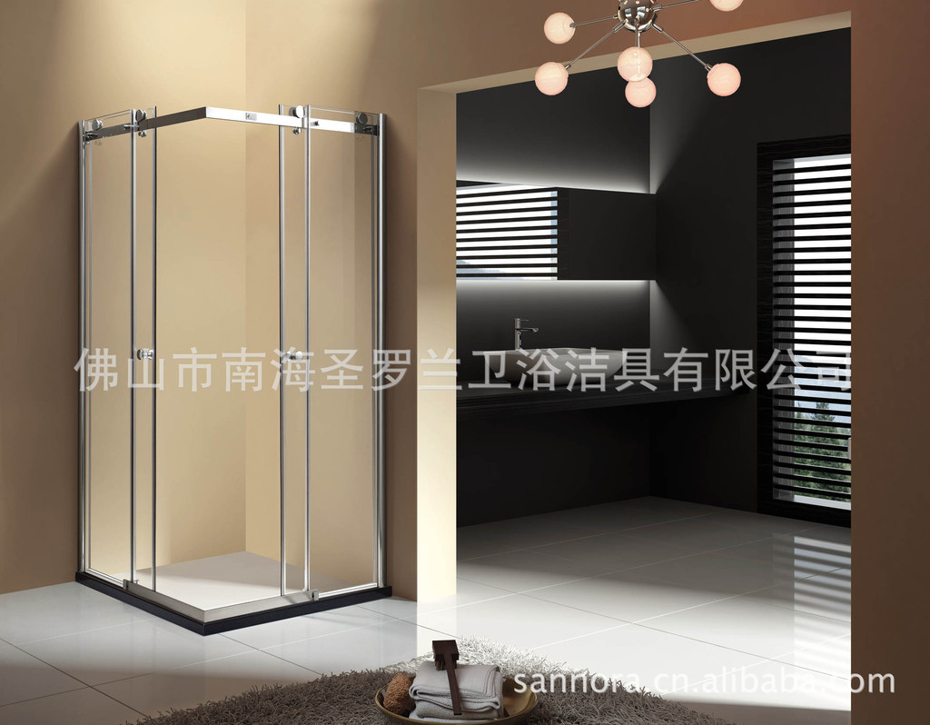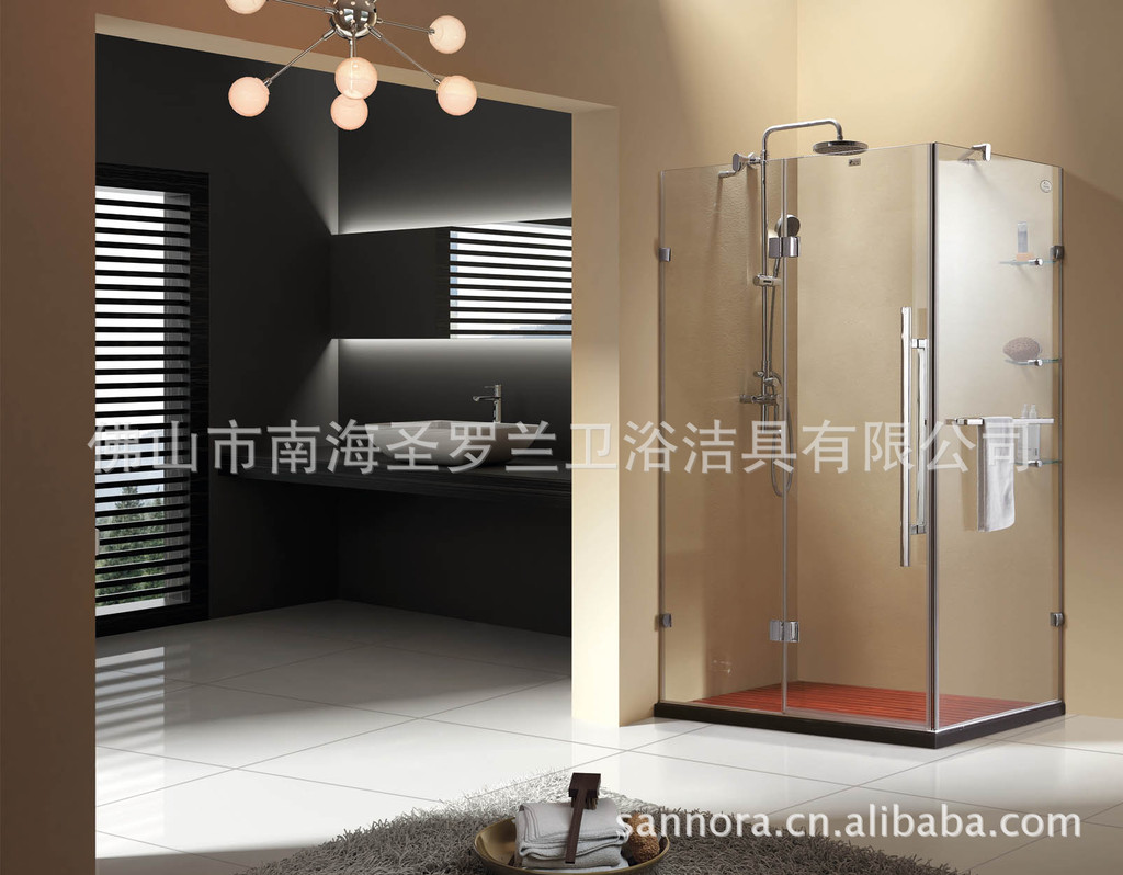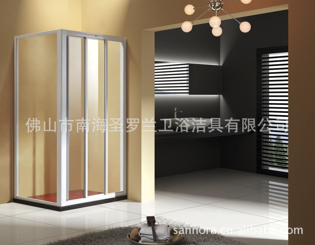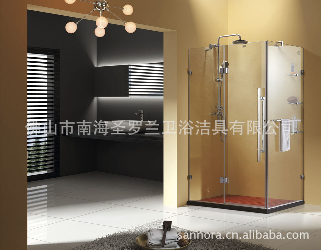 4.带边框淋浴房的铝材等均采用优质铝合金。铝材厚度最低为1.2mm以上,以确保长久使用不变形,氧化光泽度好,无划痕。光银,砂银,哑银,拉丝,白色,象牙色等多种表面处理可供选择。