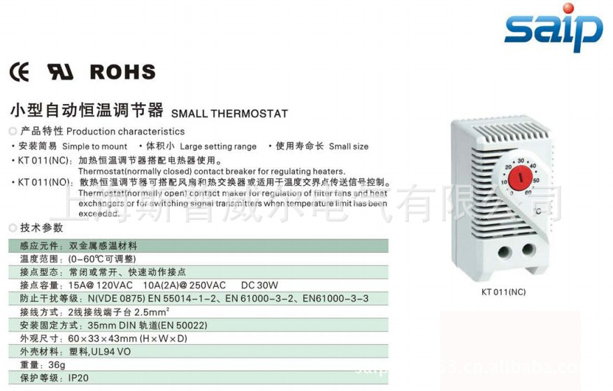 小型机械式温度调节器是被设计用于控制电柜里的电热器或冷却扇,防止其因为温度因素引起的安全事故。广泛用于通信,风力发电,消防设备,船舶,石油化工,大型工厂,沿海工厂,码头,水处理设施,环保设备等。调控范围0℃到60℃.本产品具有安装简易体积小 使用寿命长等特点,可自动启动电加热器和风扇
