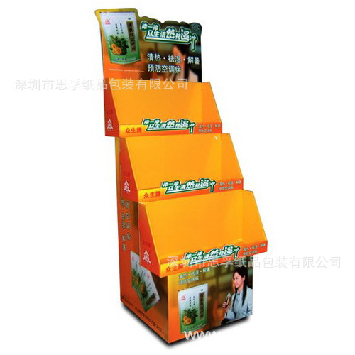 ■纸制展示架方便供应商从产地装货后直接运送到最终销售点拆包装销售,节省反复堆装分装的成本;纸制展示架具有很高的经济价值,对于任何经营形式的商业场所,都具有招揽顾客、促销商品的作用。同时,对于企业又具有提高商品形象和企业知名度的作用。