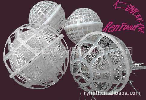 该填料系列由聚丙烯材料注塑而成,分内外双层球体,外部为中空鱼网状球体,内部为旋转球体。主要起生物膜载体的作用,同时兼有截留悬浮物的作用,具有生物附着力强、比表面积大、孔隙率高、化学和生物稳定性好、经久耐用、不溶出有害物、 不引起二次污染、防紫外线、抗老化、亲水性能强等特点,在使用过程中,微生物易生成、易更换、耐酸碱、抗老化、不受水流影响、使用寿命长,剩余污泥少,安装方便。