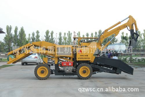 胶轮式四轮驱动全液压巷道扒渣机,是为了改善人力劳动强度提高工作效率而研制生产的一种新型扒渣机,使用该机可以把各种矿石、煤炭等直接扒到输送带上。其动力为单电式或柴电双动式。该机可以在≥2米×2米巷道内灵活操作,后面卸料部分高度可调整,适合于1.3--1.8米的运输车。扒装效率高,每小时可装料60-80立方以上,其驱动部分有机械驱动及液压马达驱动,操作部分有机械联杆式及液压先导式。(订货时需特别说明)