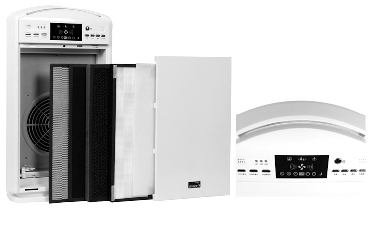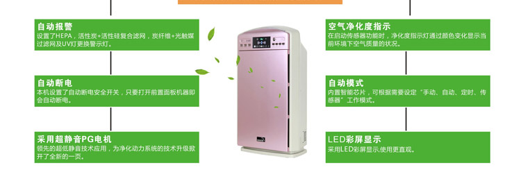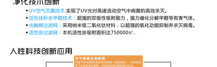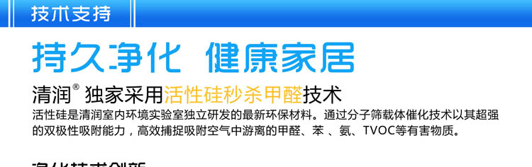 适用面积:46m2 最大风量:365m3/h 9大高效过滤净化技术 层---HEPA滤网:颗粒物净化效率≥99.9%, 最小净化颗粒达0.0001mm。 第二层---活性碳滤网:甲醛去除率≥96.2%、笨去除率≥72.5%、一般有机气体、气味去除率 ≥98%。 第三层---除甲醛因子:清润独家研发,以活性硅为基材,通过甲醛催化载体技术,有效负载活性因子, 强力催化分解甲醛分子成二氧化碳、水等无害物质。 第四层---纳米银滤网:采用广泛抗菌、强效杀菌、纳米银过滤网,可在算分钟内杀死细菌、真菌、霉菌、孢子等650多种细菌微生物。 第五层---炭纤维滤网:进一步去除异味, 提高空气清新度。 第六层---光触媒滤网:抑制病毒活性,高效杀灭病菌。 第七层---UV紫外光:自然菌杀灭率≥97.6%。 第八层--- 离子群:每秒产生800万个负离子形成离子群,为您的家居创建一个相当于15000m2 清新自然的生态环境。 第九层---臭氧:每小时产生50mg臭氧,高效去除有机气体气味,同时更新空气中的含氧量。 |