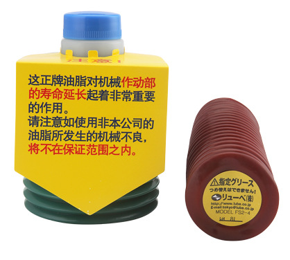 用途:Lube FS2-7润滑脂是FANUC发那科、NIIGATE新泻、TOYO东洋TOSHIBA东芝、KAWAGUCHI川口、MEIKI名机、MITSUBISHI三菱、SODICK沙迪克、DEMAG德马格、宇部兴产等电动注塑机使用,及其它冲压机、研磨机的リユーベ(株)LUBE集中润滑装置,对延长螺杆及机器其它部件的使用寿命有非常重要的作用