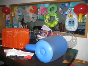 本公司生产的主要产品包括各种水上和沙滩充气娱乐用品、家庭充气玩具用品、广告仿真气模、广告大气球、充气卡通、广告促销礼品、圣诞节充气用品。具体产品有:水上摩托艇、充气船、游泳圈、浮排、沙滩球、空气床、充气水池、沙发、充气坐垫、枕头、颈托、飞机、飞盘、不倒翁、充气棒、灯笼、充气形象动物、包装袋、入油产品、入水产品、手机擦、相框、吊牌、圣诞老人、圣诞树、雪人、滑雪圈、圣诞礼物、可提供样板,也可来图来样订制。我们的产品符合欧美标准,主要客户来自欧美。