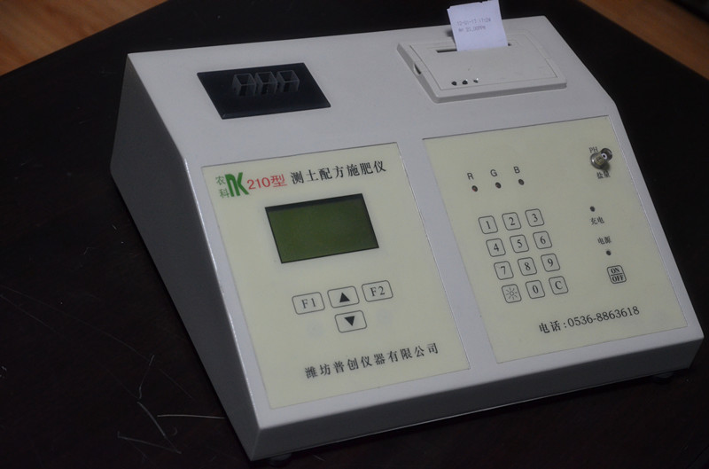 NK-210型测土配方施肥仪可快速检测出土壤、肥料、植株中的速效氮、速效磷、有效钾、全氮、全磷、全钾、有机质、土壤酸碱度及土壤含盐量(定量),除具有存储,打印功能外,仪器还内存80多种农作物生长发育所需养分量配方施肥软件系统,可根据用户需要输出指导施肥量并打印出来。极大缓解了全国各地农民朋友测土配方施肥的需求,同时也为肥料生产企业实现专业化、系统化、信息化、数据化提供了可靠的依据,是农业部门测土配方施肥的首选仪器。广泛适用于:各级农业检测中心、农业科研院校、肥料生产、农资经营、农技服务、种植基地等领域。