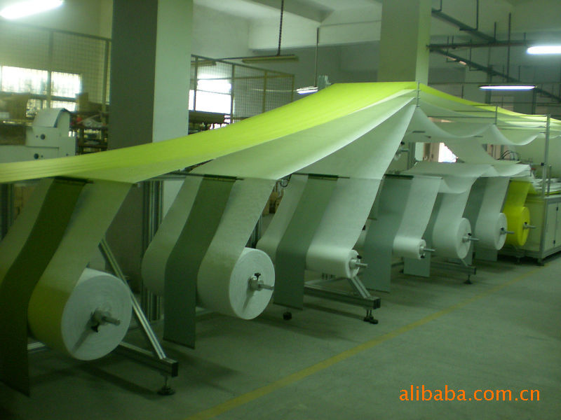 以无纺布为材料,集送料、分条、超声波熔合、切片等过程于一体一条线自动化作业,