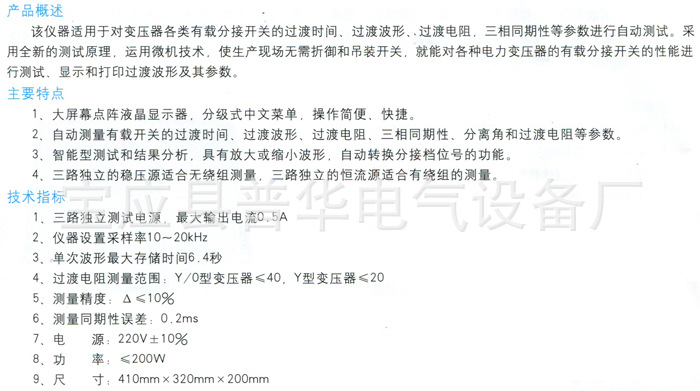 本厂目前拥有一批掌握高新技术的电气工程专业技术人才和谙熟现代企业管理制度的管理精英,有专门从事电力测试仪器生产及营销的队伍。公司在生产过程中严格执行ISO9001质量体系认证和电力行业规程,产品经国家权威部门检测,各项技术指标均已达到标准要求。我们的用户已遍布全国三十多个省、市、自治区达到上千家单位。产品在供电局、发电厂现场试验,电力科学试验研究院、电力建设部门及其它科研高校机关、专业试验室中使用得到了广泛的赞誉与支持。