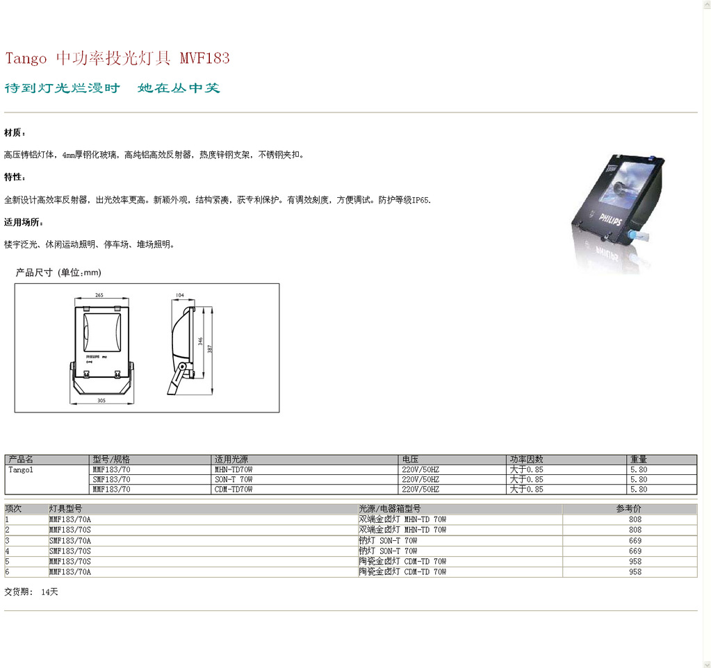 Tango1 | MMF183/70 | MHN-TD70W | 220V/50HZ | 大于0.85 | 5.80 |