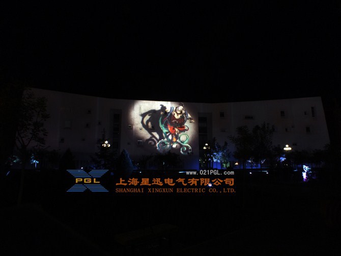 PGL户外大功率投影机则很好的解决了这些问题,首先PGL户外大功率投影机体美观灵便、质量坚固、耗能低,安装和使用都非常方便。而且这种设备产品的宣传内容更替比较简便,我们只需要通过更换底片就可以达到各种广告应用要求,这样便可以大大的降低我们的广告成本。而且PGL投影机最重要的一项功能是传统广告无法比拟的是可以应用在各种高层建筑的外墙上,不破坏整体墙面,打造出一个巨幅广告的震撼画面。