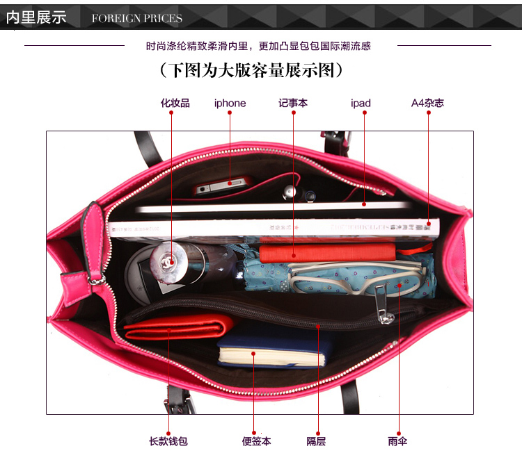 主要的产品包括:精巧雅致、明朗欢快、休闲浪漫女装手袋、女士定型皮具,典雅,高贵时尚女包皮具系列,手提包、挎包、背包、挂包,旅行包,运动包,银包等手袋皮具,同时我们承接OEM生产以及皮具加工。目前我們的产品畅销欧美,东南亚,中中东,非洲等国家和地区,深受海外消費者的喜爱!我們的主要材料有PVC,PU,600D,300D,尼龙,牛仔,仿真皮等