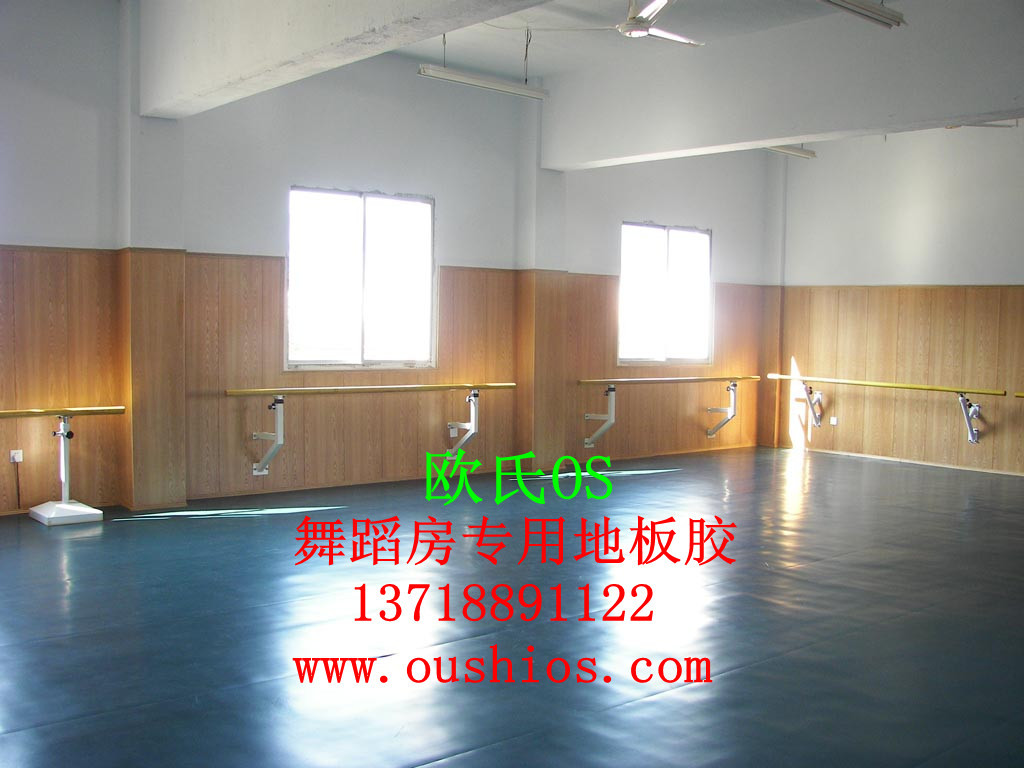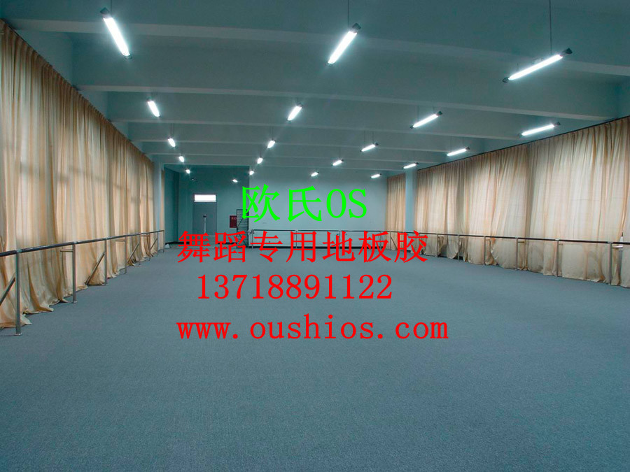 6).舞蹈地胶吸音性能好 专业舞蹈地板标准的底层厚度,加上适合的反弹性和合理的吸震性,在运动中具有吸音的功能,隔音效果好。 舞蹈室专用地板胶色泽鲜亮,表面光滑细腻,柔韧性好。弹性适中,润涩适中,有利于缓冲运动中的冲击力,并且易于清洁维护、不变性、不开裂。 OS欧氏舞蹈地板性能卓越,防潮、防滑、耐磨、抗压、耐污绿色环保,无甲醇、无毒,可很好的保护舞蹈者运动中不会摔倒而造成意外伤害。 舞蹈地板胶能使舞者尽情挥洒舞蹈艺术的精彩!