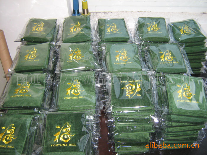 生产的毛巾系列产品原料全部选用上等一级100%纯棉精制而成,制造工艺复杂:上端下端是缎边,正面是绒面,反面是毛圈;毛巾叠三折,打金属铜鸡眼,有金属葫芦挂钩,或登山扣;经久耐用、纯白度高、手感好、色泽鲜艳、吸水性好、花样丰富、不褪色。产品的质量和合理的价格是我们的基础,良好的服务是我们的生命。建立良好的信誉和您连续的合作是我们永远的目标。