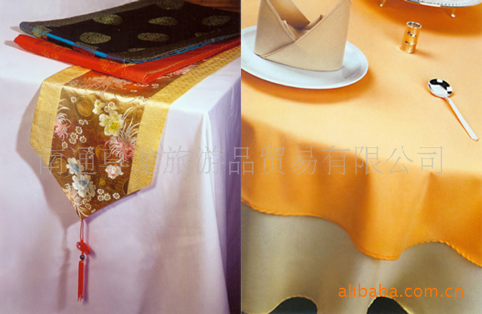 是我国旅游商品定点生产企业;专业生产:供应:产品简介:全棉高支高密缎纹提花台布,口布;32S/2;42S/2(散花、独花、缎框)口布:48*48CM、56*56CM、145*145CM、180*180CM、240*240CM、280*280CM、300*300CM、3330*330CM。还有VISA(维纱)牛津台布;仿亚麻台布;丝光缎台布,缎格台布,缎框台布,横竖条台布,宝石格台布,等产品,色织格子台布;全棉高支高密缎纹台布和大提花台布; 酒店宾馆餐厅用。