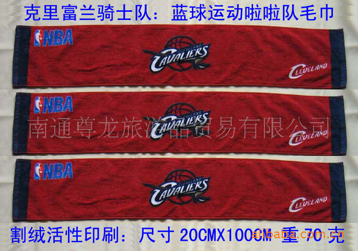 割绒活性印刷NBA蓝球运动毛巾;34*80CM;重:100克;四套色印刷;NBA蓝球运动毛巾50*100CM。重:180克;三套色印刷,;NBA蓝球运动啦啦队毛巾20*100CM。重:70克;5套色印刷,