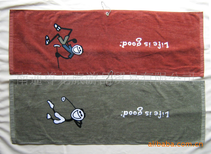 活性印刷高尔夫毛巾:规格30X90CM; 重120克;100%全棉;对折中间打金属铜鸡眼,有金属葫芦挂钩,或登山扣;4款颜色:橙色,灰色,蓝色,酒红色;