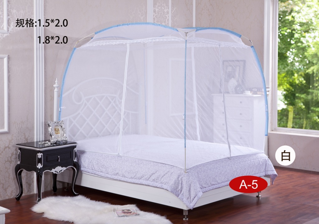 蚊帐按照目前市面上常见的材质可将蚊帐简单分为三种:蒙古包式蚊帐1、棉纱帐。优点:透气性好,耐用,价格便宜;缺点:清洗不方便,吸水太多,容易乱丝。2、真丝帐。优点:柔软,体积小,质地轻,携带方便;缺点:容易褶皱,透气性一般,价格偏高。3、化纤帐。优点:有立体感,质地柔软,透气性好,轻巧耐用,方便洗涤;缺点:暂无。按照外型来分,可分为三种:1、圆顶,又称“蒙古包”。蒙古包一般是两开门,优点是:安装方便,架子稳固,价格便宜。缺点是:空间小,阻挡视线,看电视不方便。2、方顶四方三开门。宫廷式蚊帐,方顶四方三开门蚊帐相对来蒙古包来说,在样子上看上去更漂亮一些。优点:样式漂亮。缺点:不太稳定,价格偏高。3、四边弧形。一般吊在天花板上。优点:外型华丽高贵,美观大方。缺点:价格偏高。总和说来一般空间比较开阔的使用四边弧形和方顶四方三开门的蚊帐。
