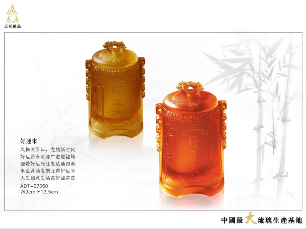 对女人来说,她是情人的眼泪,对男人来说,他是兄弟之情,居家则致千金、居官则至卿相,琉璃是一种道、一种感悟、一种品德、一种大智慧、一种情感、一种格调、一种吉祥祝愿、一种神秘、一份历史、一种……,还有什么比琉璃更适合作为礼物的呢?