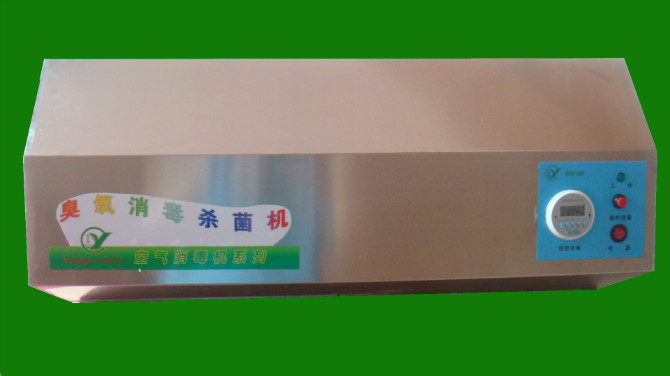以高频高压电击空气中氧气产生臭氧为原理的臭氧消毒机,具有机体积小,电耗低,臭氧产量大,灭菌和消毒速度快,不产生残留和二次污染,价格及运行费用低。具有完善的电脑可编程时控器和过载及短路保护功能,并采用摇控方式设定工作时间和设置主机停机后风机延时功能以保护发生器件,这样可大大提高了工作寿命和运行的可靠性。