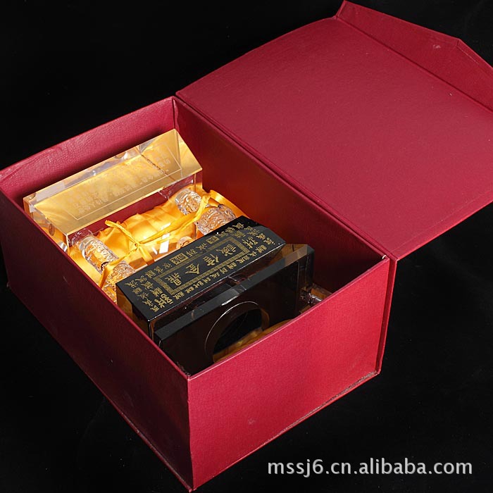 水晶产品造型和大小尺寸以及内雕图案均可定做,可在水晶产品上加印公司LOGO。