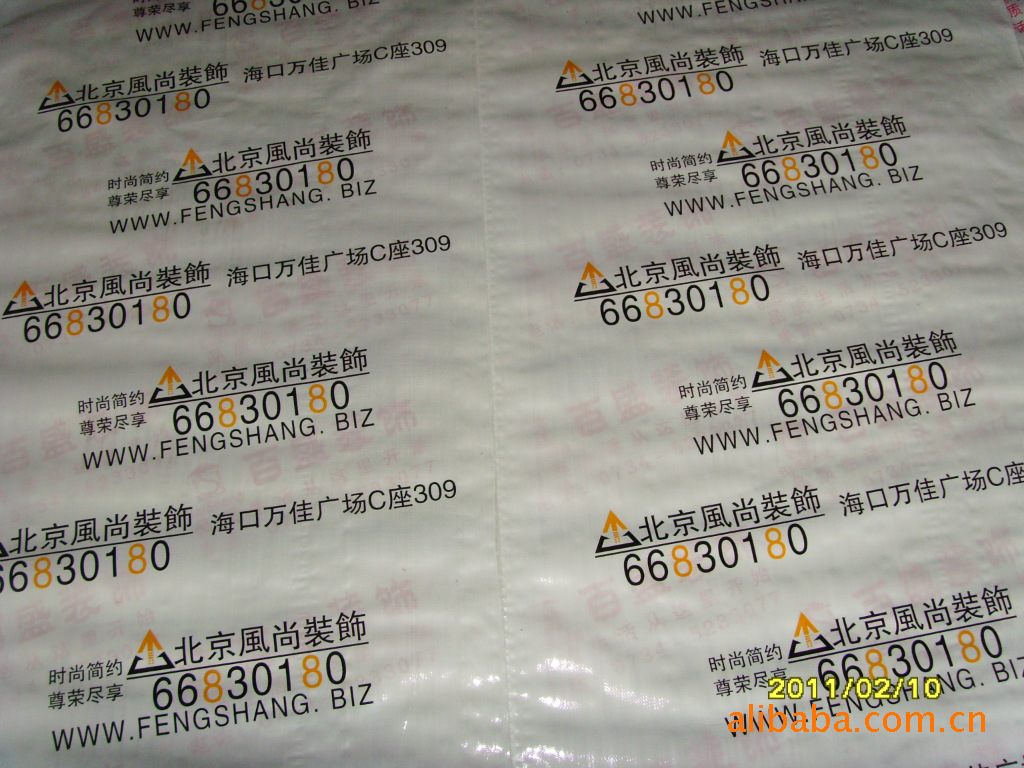 我公司专门从事装饰公司用成品保护膜的印刷(成品保护膜具有的视觉冲击力,既起到了保护成品的作用又起到了宣传自己公司的作用 !),质量上乘,价格合理,性价比高,欢迎各大装修,装饰公司来电咨询,您的满意就是我们的服务宗旨!联系电话 13958788820 潘先生QQ:270210700