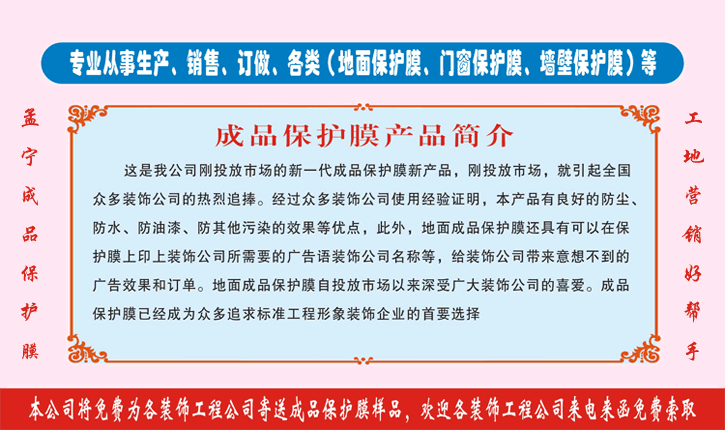 装饰公司用成品保护膜、地垫、防潮膜、防潮纸、地膜贴、窗贴