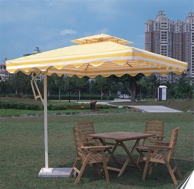 罗马伞,又称为:360度旋转伞,是今年户外遮阳伞系列产品中最受欢迎的一种新型款式太阳伞,也是户外遮阳伞中功能最强大的一款,即可以水平方向旋转一周,也可以垂直方向转动90度,伞面方向可以自由转动,这样就可以很随意的把阳光挡住哦!跟其它的伞相比,罗马伞遮阳效果更好(伞面前倾斜度大,伞下的面积也大),操作更方便(通过手柄控制转动和升降的,省力更省心)。