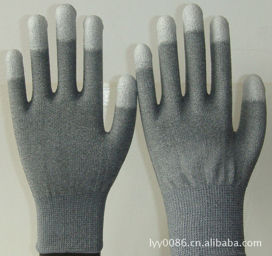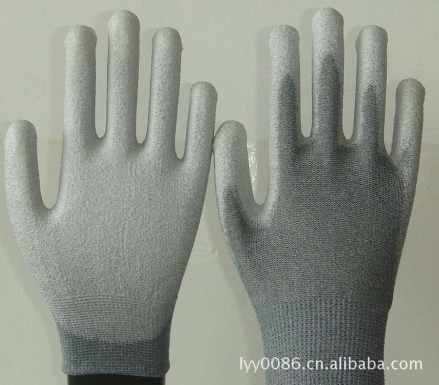 由高弹碳素纤维纱+进口导电丝无缝自动织成,不脱线,手掌和手指表面涂PU树脂。二、PU材质具有耐强酸碱特性,有效防滑,避免在抓取物品时滑落,不会残留指纹印,提高生产率。三、手套具抗静电功能- 避免手指产生静电破坏RAM / IC的电路造成短路。可用于1000至10000级无尘室。四、无毒性成份,保障使用者的健康(PU-无毒/nitrile致癌物)。五、防污染,防滑,防热,耐磨,易吸汗,透气度佳,穿戴舒适(Nylon),止滑性极佳(PU)-易于操作精密组装工程,给使用者感觉更服贴合手,适合长时间作业,减少操作员长期工作流汗手滑所造成的失误。六、合乎经济效应,不易变形,使用寿命长,可用水清洗后重复使用。* 适合使用在各种无尘室,各大小型电子厂及电路板PCB厂,TFT LCD工厂,精密组装工程,半导体厂,光盘厂,实验室等