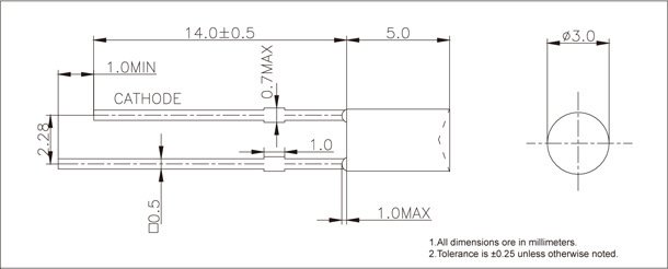 ∮3mm凹头无边直插式发光二极管 红、黄、橙光 宽视角 LED灯饰用