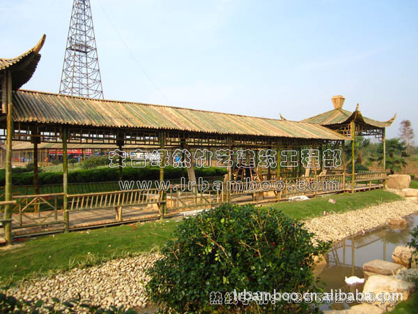 本公司是一家专业从事生态农庄、旅游景区及渡假村内整体竹建筑工程项目建造的施工单位。主要经营竹建筑、竹房子、竹别墅、室内竹装潢、竹门楼、竹亭、竹长廊、竹篱笆、竹桥、竹家具等竹工艺制品的设计、工程施工、售后服务于一体的综合性竹艺企业。