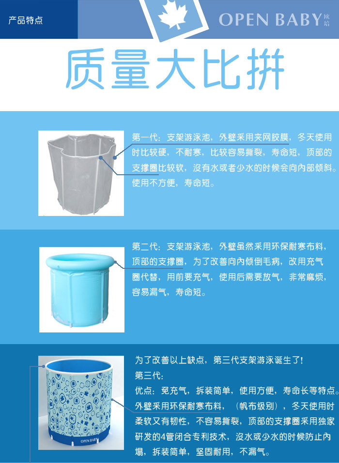 但是,建议家长还是以浴室使用为主,一是水池容量较大,客厅和阳台给水和排水的条件都不方便;二是浴室空间小,比较容易保障环境的温度,避免宝宝着凉,尤其是冬天。三是避免万一婴儿水池漏水,给家里带来不必要的麻烦。