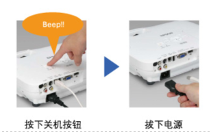 按下关机键,听到"Beep"声后便可马上拔下电源,无需等待投影机冷却(关机后风扇立即停转) |
