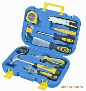 1PC包胶两用螺丝刀1PC 7”珍珠镍钢丝钳1PC数显电笔1PC 8”高档活扳手5PC球头内六角1PC软面卷尺1PC 0.25kg镀鉻羊角锤1PC胶布1PC包胶美工刀1PC铲刀1PC彩塑盒