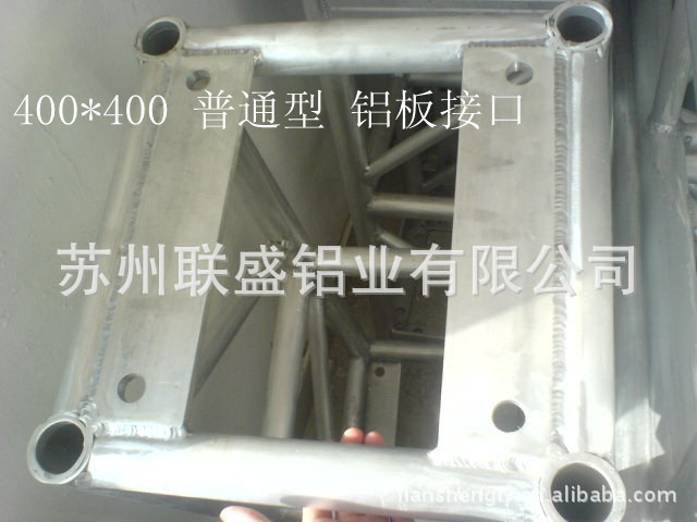 400*400铝桁架:经济型:主管¢50*3,副管32*2,小管¢32*2,接口60*30*3目字方通,理论最大安全跨度14米;