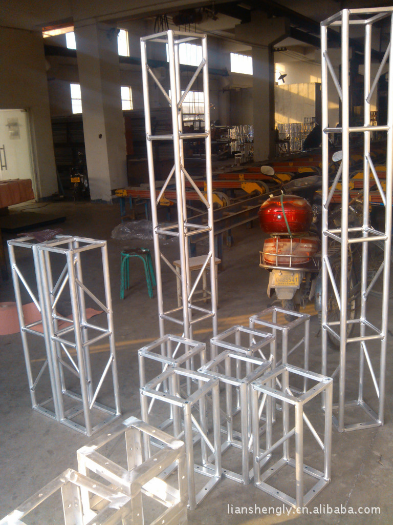 用料国标6061-T6铝材,适用于专业流动室外演出,户内展览架,适合广大租赁商和展览公司使用,其具有拆装方便,存放占地空间小,耐用、可多次反复使用,亦可根据场地大小任意组合,坚固安全,美观高档,造型多,成本低等优点,配套本厂生产的接头组合可以搭建出各种想要的效果和造型
