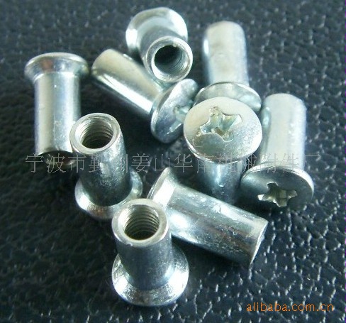 头部是十字沉头的,底部是空心的,这款铆钉是用在手柄上的。内有螺纹,所以可以用螺丝连接,表面是镀锌的。我厂专业生产各种高强度紧固件、非标件、美标螺栓、英制螺栓等。我厂有多台冷镦机、多工位冷镦机、冲床,可提供冷打、冷成型、红打等多种加工工艺,欢迎新老客户前来咨询。