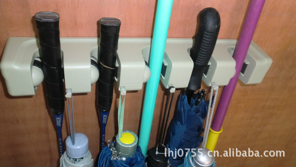 深圳厂家直销五挂位(带2钩及4钩)拖把架扫把架置物架收纳架随意挂