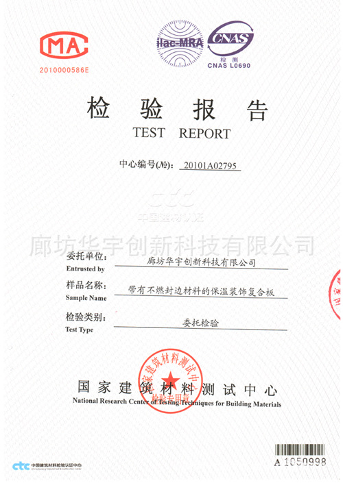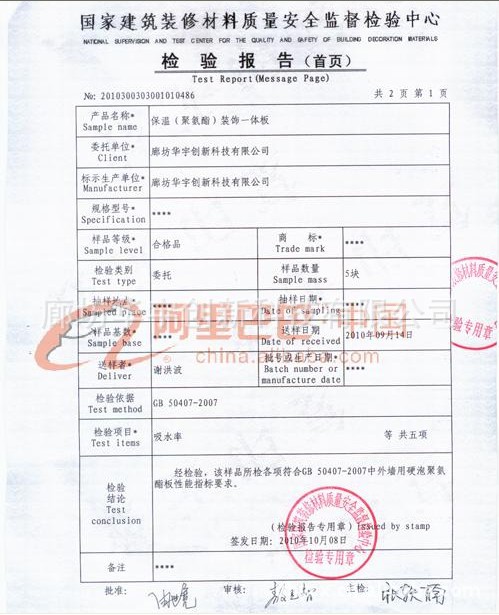 A级保温、隔热材料外墙聚氨酯复合板