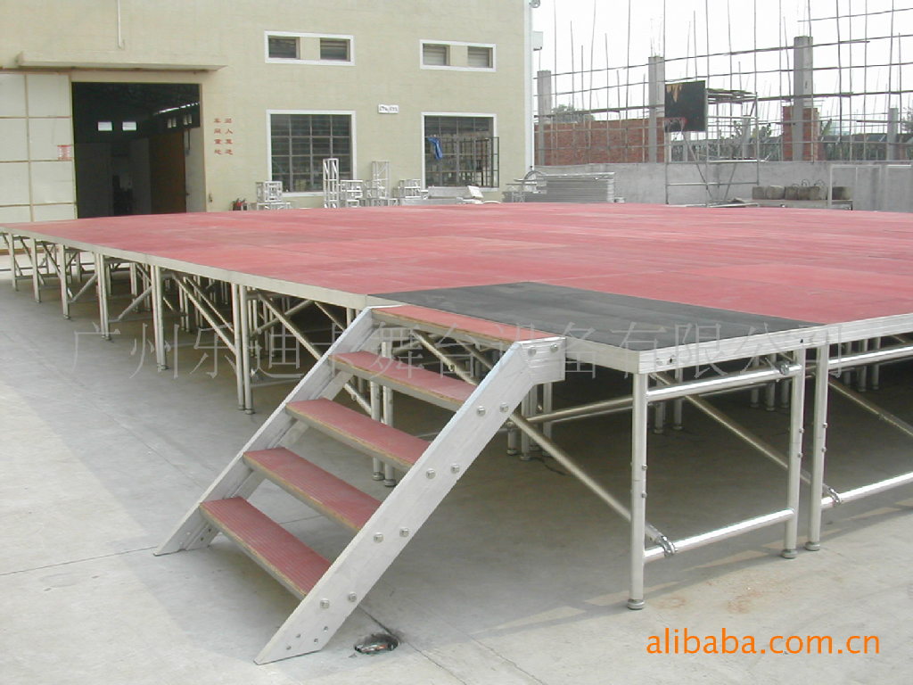 二、铝合金活动舞台: 流动舞台/折叠舞台/ 拆装舞台/可调节舞台/透明舞台/玻璃舞台 高度0.2 m--2.0 m,规格1.22m*1.22m / 1.22m*2.44m / 1m*1m / 1m*2m