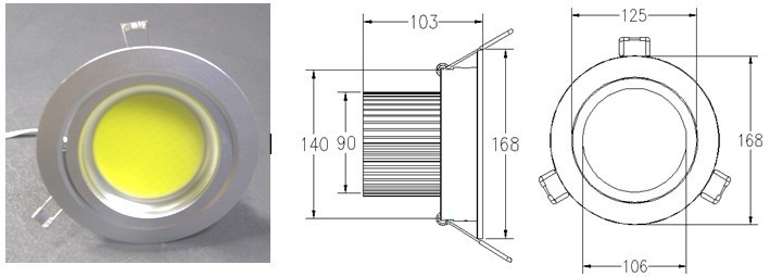 10、外型尺寸: Ф168mm×H103mm 开孔Ф140mm(灯具开孔尺寸应小于安装位置3mm左右才能装入);