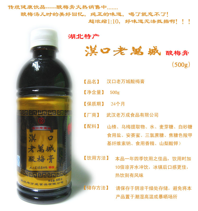 健康饮品。“汉口老万城”牌酸梅膏、酸梅汤系列产品是目前