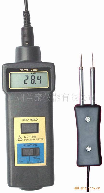 1. 用途 本仪器主要用来测定木材和木质纤维类物质中的水份含量和测针周围介质的温度,如竹制品、木器、中药材、、棉花、纸张等非导电类物质的含水率测定。 2. 特性 * 采用计算机技术,测量范围宽,准确度高。 * 一机多用。既可测量水份含量,又可测量测针周围环境温度。 * 数字显示,无视差。 * LCD采用动态驱动。功耗低,且大大提高了仪器寿命。 * 具有低电压指示功能。 * 测针和仪器主体分离,便于操作。 * 整机采用经久耐用的优选电子元器件,外壳采用重量轻而且坚硬的ABS塑料,造型美观大方。 3. 主要技术参数 显示:3位10mm液晶 水份测量范围:0~50% 温度测量范围:-10~60 ℃ 分辩率: 水份 0.1% 温度 0.1 ℃