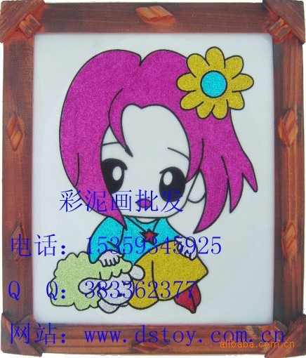 彩泥画、泥巴画、木框彩泥画、玻璃框彩泥画