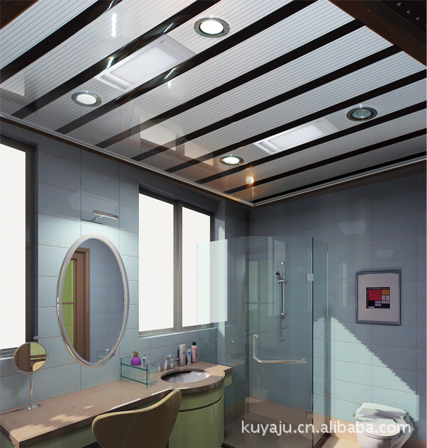 U型条扣天花是条扣大类的又一新品种,为时尚建筑装饰增添了新的特色。本品是由8.4公分平面板和1.6公分彩色镶条拼装组成。U型条扣天花配备数种颜色,可随意拼装。更具层次感、时尚感,表面采用纯聚酯喷涂或滚涂处理,有十年以上的品质保证,具有抗腐蚀、防水、易清洗等特点,是游泳馆、商场、大专院校等公共场所的理想装饰材料,更是卧室、厨房、卫生间、阳台装饰的首选之材。
