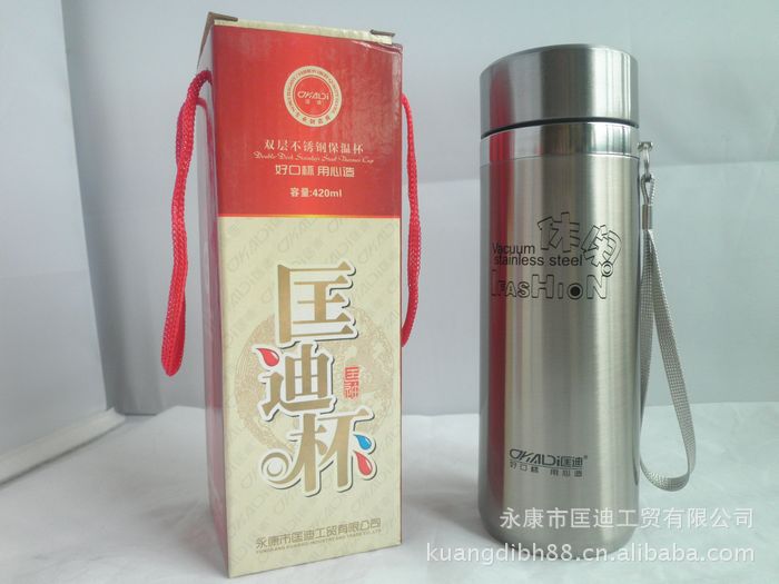 1、匡迪牌不锈钢保温杯均采用国家食品级不锈钢材质。 2、流线外形时尚美观,表面处理考究,自然光亮,符合现代潮流及审美观。 3、敞口式结构,随手可饮,圆弧杯口,口感舒适。 4、可装开水、冲茶、存放冰块。 5、外形美观,使用方便。 6、表面光亮、耐冲击 7、抗菌加工、易清洗 |