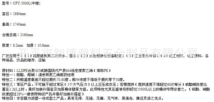 广泛应用于:(1)高层建筑第二次供水、蓄水;(2)水处理净化设备配套;(3)工业用水冷却;(4)化工制济、化工原料、各种油品、饮品的储存、运输