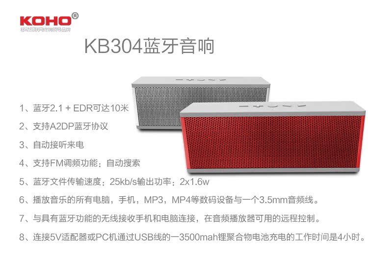 新品KOHO KB304 正品 高品质长方形迷你版便捷携带蓝牙音箱